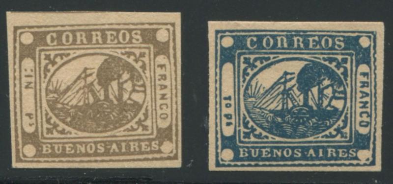 Argentina - Buenos Aires 1858 #1 and #8 Mint no gum as issued, sold as is, if genuine Scott value $1100, appears f-vf