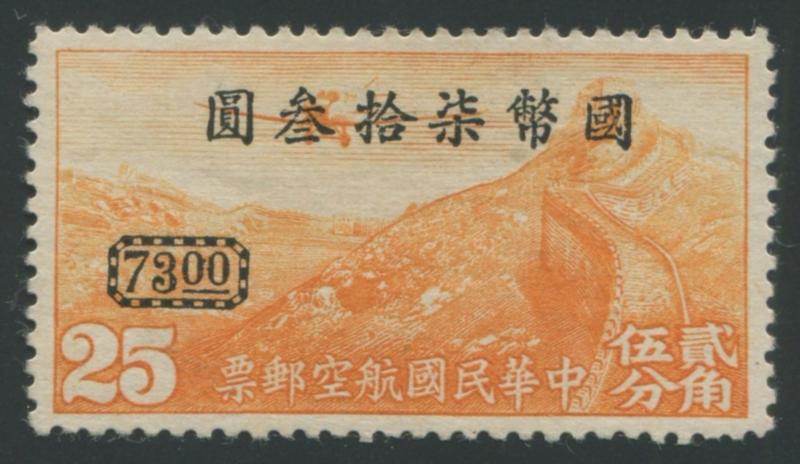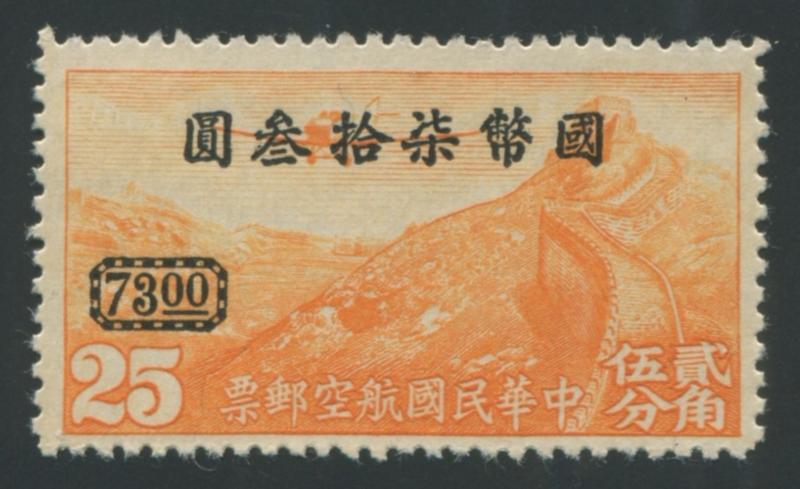 China - Air Post 1946 #C42 $73 on $25 orange MLH, if genuine Scott value $2500, appears to genuine f-vf