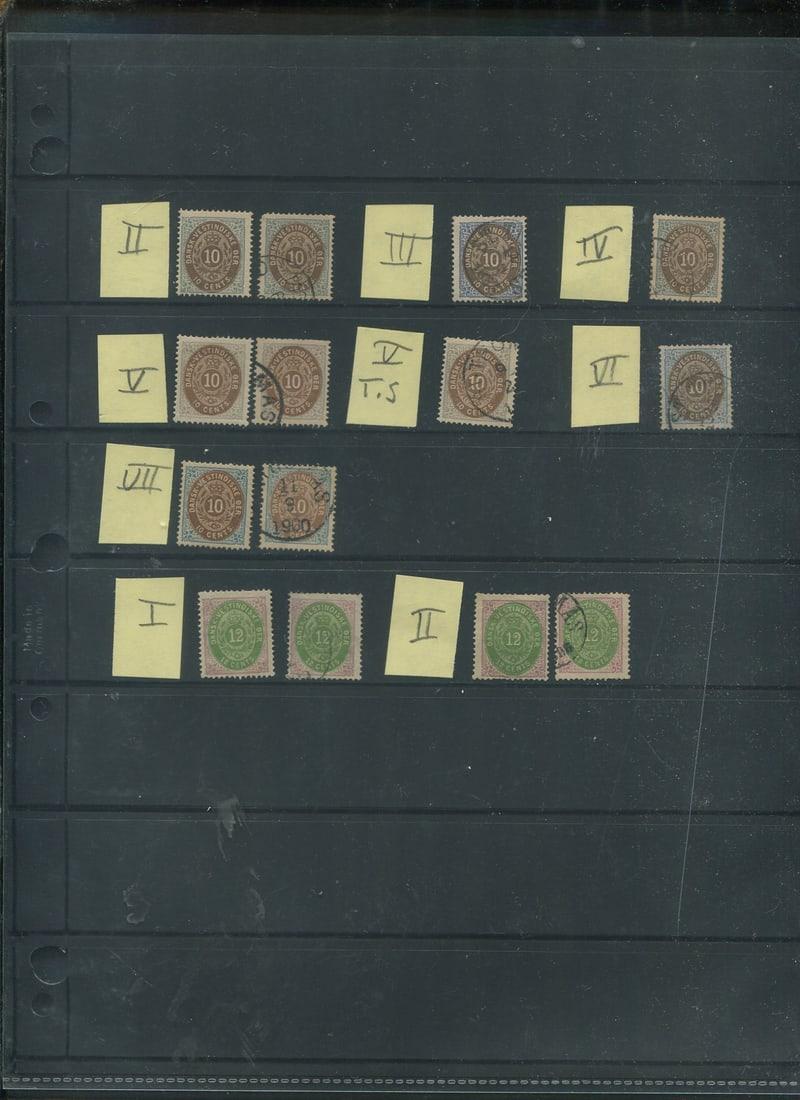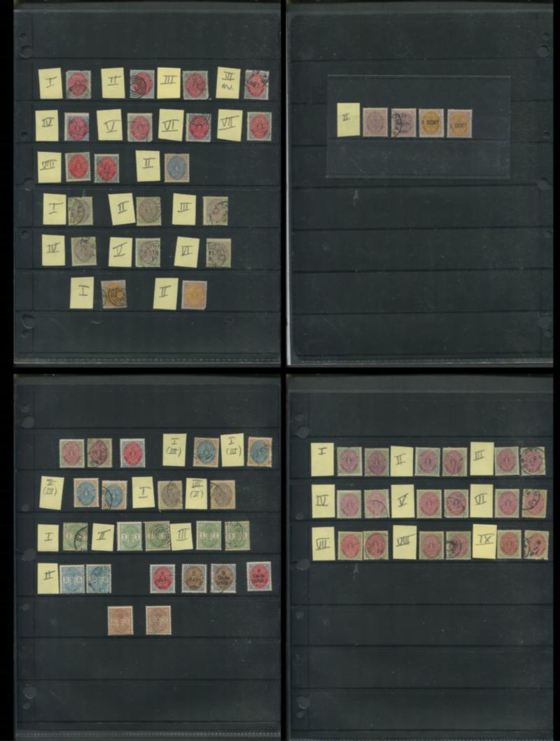 Danish West Indies 1874 #5 -#11a, a MH and used specialized group of 1c to 12c, with shades and cancelation varieites, Scott value $2843.50, appears f-vf