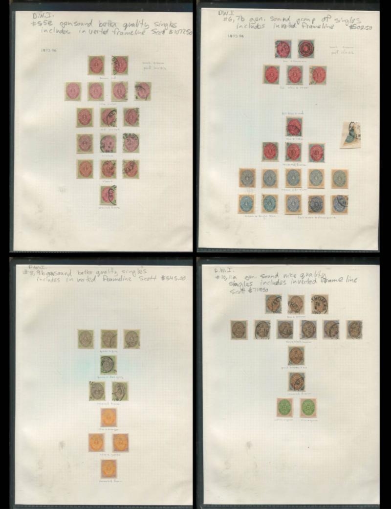 Danish West Indies 1874 -1903, #5 / #30, a Mh and used specialized study of various printing includes #5, 1c green and brown-red, #6 /#9 3c to 7c, #13 /#15 higher values, and #16/#30, Scott value $2193+, a great study to expand, appears f-vf