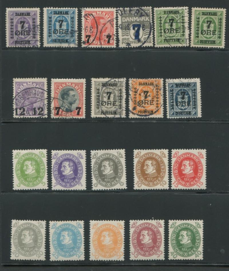 Denmark 1926 -1930, #181 -191 a uset complete set and #210 -219 a MNH complete set, Scott value $640, appears f-vf