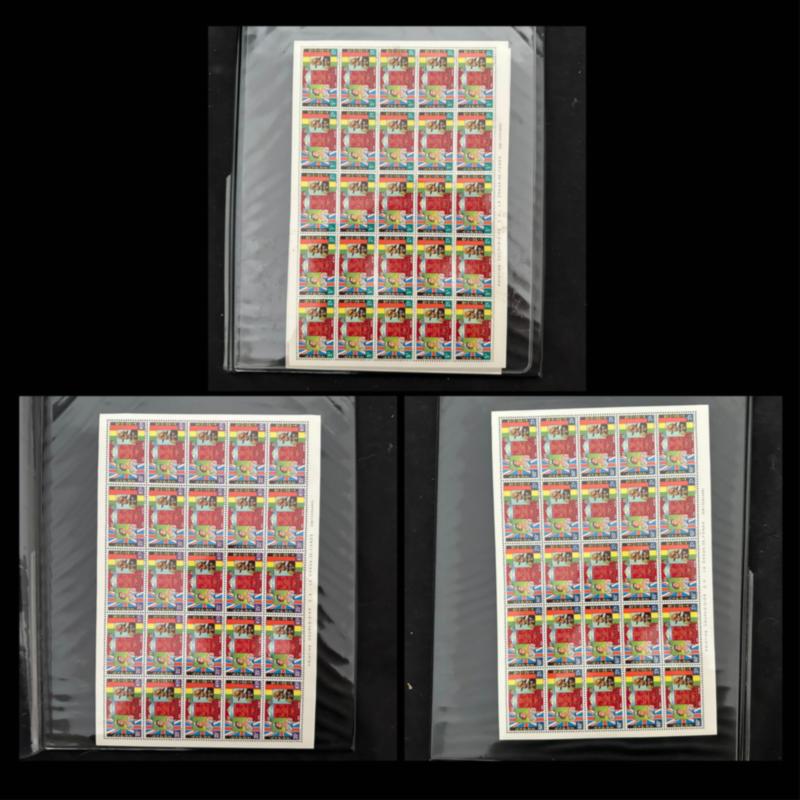 Eithopia 1965 #C86 - #C88, in MNH sheets of 25, one for each of the value values 5c, 35c and 60c CV $100, appears f-vf