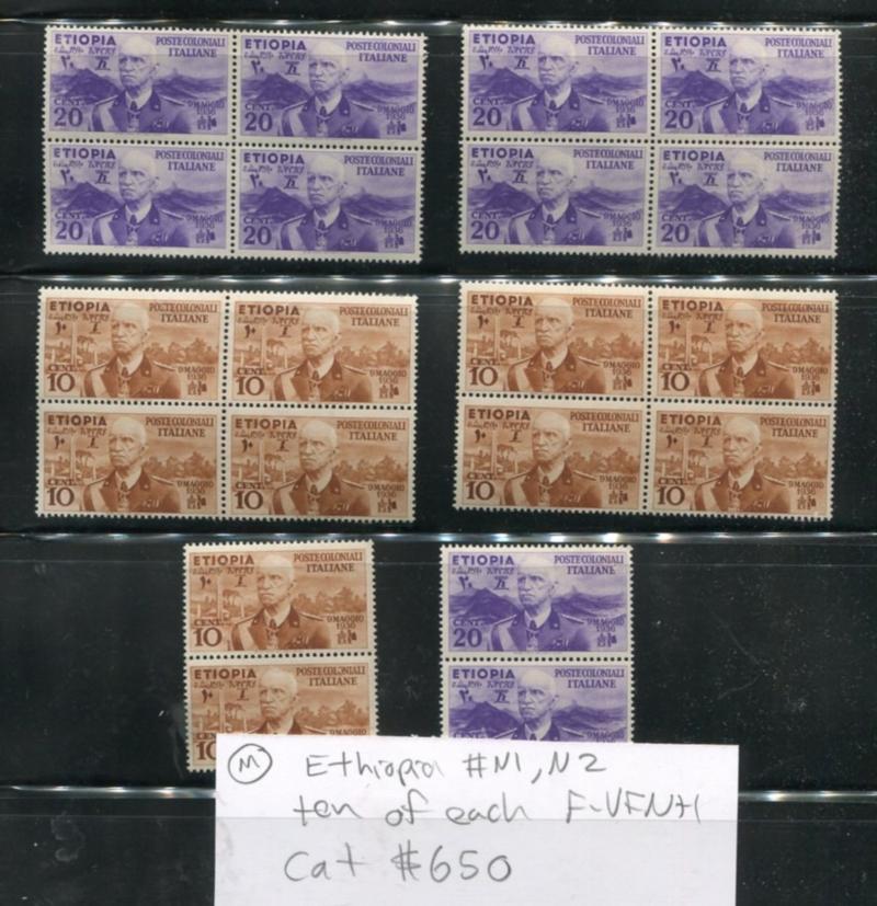Eithiopia 1936 # N1 and N2, a MNH group of ten of the 10c orange brown and 20c purple in two blocks of four and a pair for each value,appears f-vf