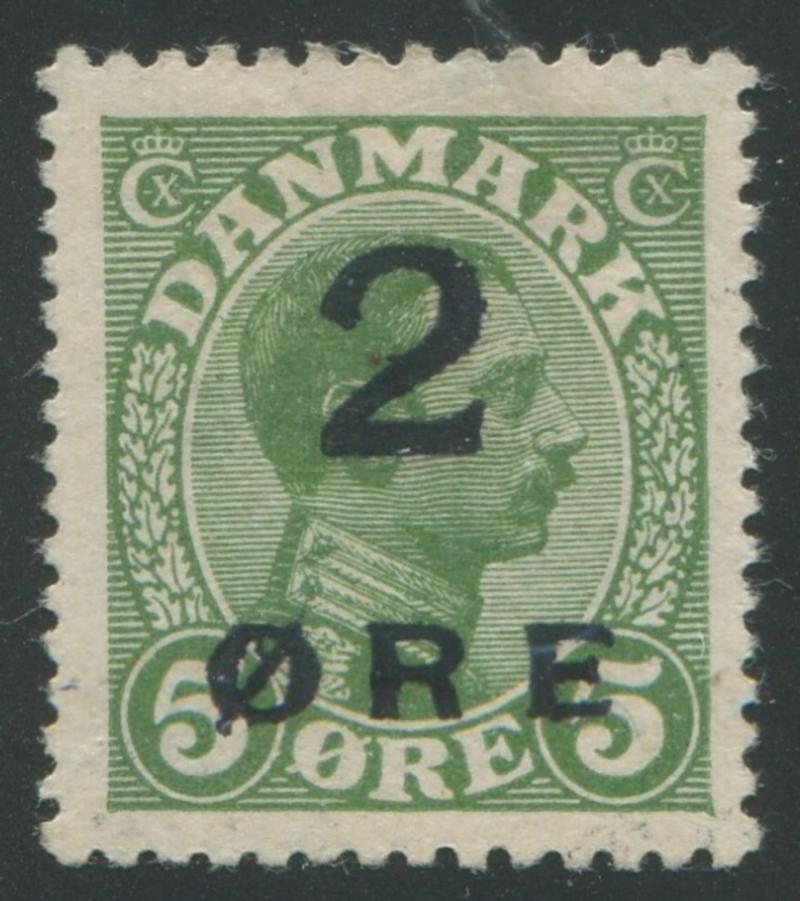 Faroe Islands 1919 #1, a MLH 2o on 5o green Scott value $1400, signed on the reverse, appears f-vf