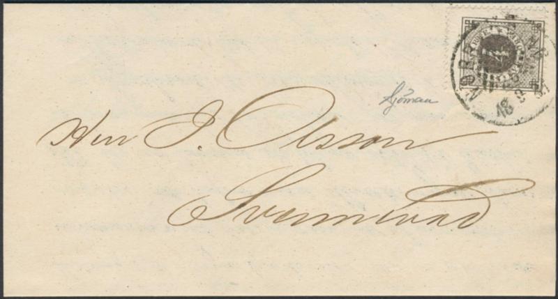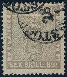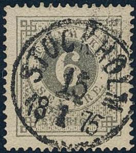 Sweden, Facit 20g or Scott 21 used, 6 öre olive-grey. Superb–EXCELLENT cancellation STOCKHOLM 15.1.1875. Signed by O.P.