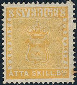 Sweden, Facit 4 IIE2 *, 8 skill orange-yellow, 2nd reprint. Dense background. Good centering. Owners mark, large part og.