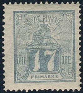 Sweden, Facit 15c or Scott 15 *, 17 öre bluish grey. Very fresh ex. F 6500