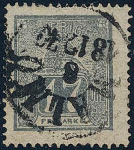 Sweden, Facit 15c or Scott 15 used, 17 öre bluish grey. Well-centered copy with reversed canc. MALMÖ 8.12.70. Cert. Grønlund. F 6500 1 more image is available at www.philea.se.