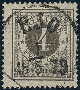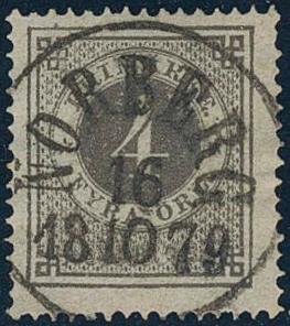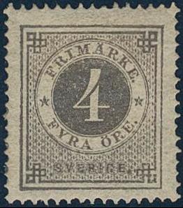 Sweden, Facit 18a or Scott 18 used, 4 öre dark grey. EXCELLENT cancellation NORBERG 16.10.1879. Certificate HOW 4, 3, 5 (1991). 1 more image is available at www.philea.se.