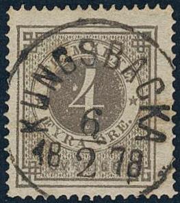 Sweden, Facit 18a or Scott 18 used, 4 öre dark grey. EXCELLENT cancellation KUNGSBACKA 6.2.1878.