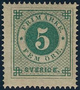 Sweden, Facit 19d or Scott 19 *, 5 öre blue-green. Certificate HOW 3, 3, 4 (2007). F 3500 1 more image is available at www.philea.se.