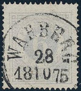 Sweden, Facit 20i or Scott 20a used, 6 öre dull blue-lilac. Superb–EXCELLENT cancellation WARBERG 28.10.1875.