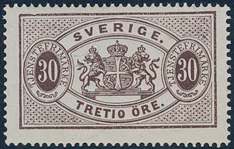 Sweden, Official Facit Tj8a **, 30 öre deep brown, perf 14, blue-greyish paper. Scarce stamp as MNH. Certificate Mats Nilsson (2025). F 9500 1 more image is available at www.philea.se.