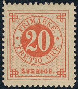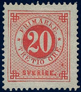 Sweden, Facit 33v1 F *, 20/TRETIO öre Fournier forgery. Very fresh and beautiful.