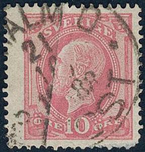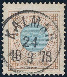Sweden, Facit 37 or Scott 37 used, 1 Riksdaler brown/blue. EXCELLENT cancellation KALMAR 24.3.1878.
