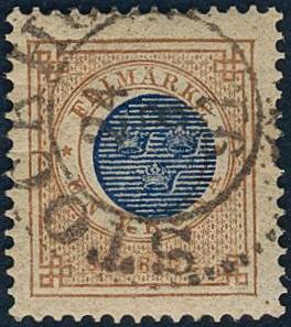 Sweden, Facit 37 or Scott 37 used, 1 Riksdaler brown/blue. Superb example cancelled ASKERSUND 20.10.1877. Certificate Harbrecht 4, 5, 3–4 (1988). F 8000 1 more image is available at www.philea.se.