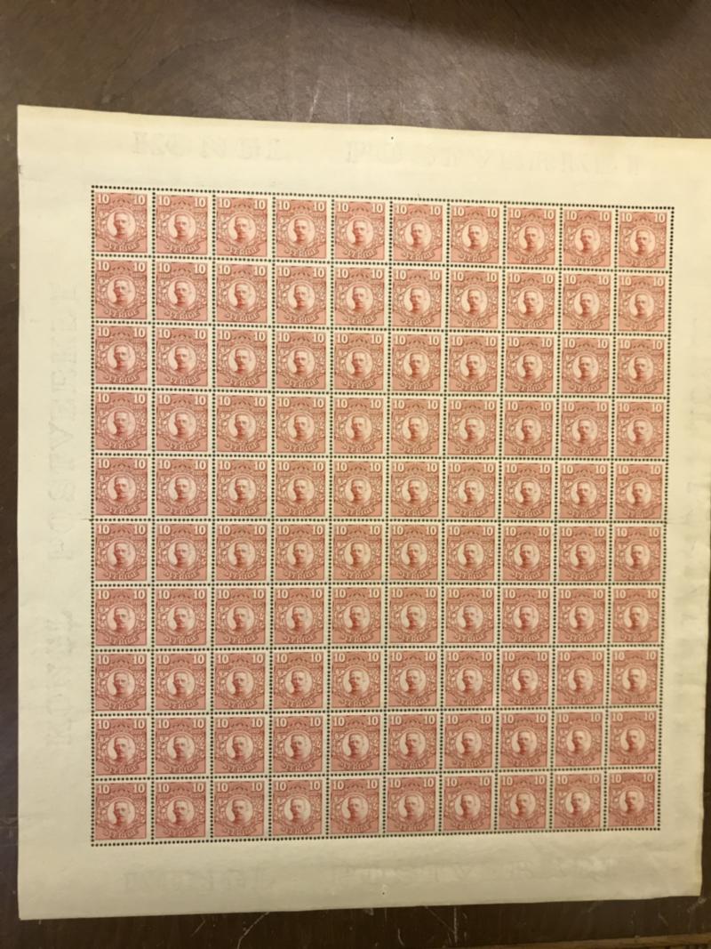 Sweden, Facit 76 or Scott 71 **, 10 öre red, watermark crown. Full sheet with 100 stamps. F 20000