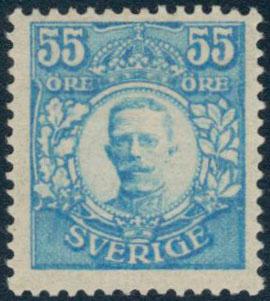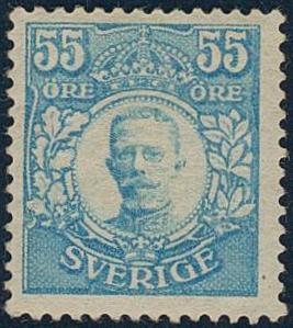 Sweden, Facit 92 or Scott 90 *, 55 öre without watermark, light blue. Cert. HOW 3,3,3. 'Ett vackert och fräscht exemplar'. 1 more image is available at www.philea.se.
