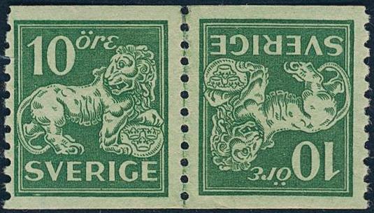 Sweden, Facit 144Av2 or Scott 118a *, 10 öre green, tête-bêche tails against each other. Fold in perf. F 14000