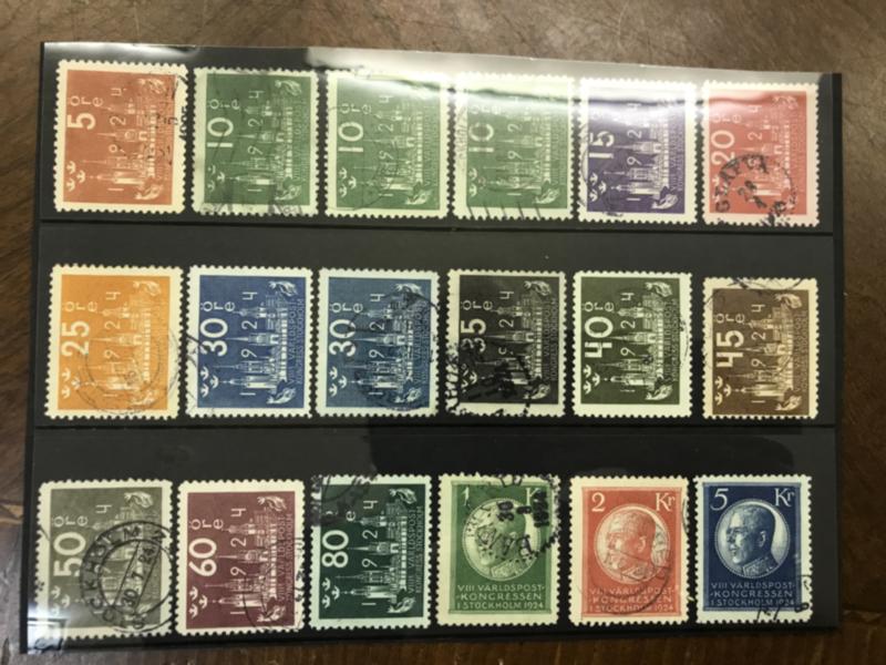Sweden, Facit 196–210 used, Cpl. set (18) with good perforation incl. cx, cxz and 30 öre dull greenish blue. F 13100