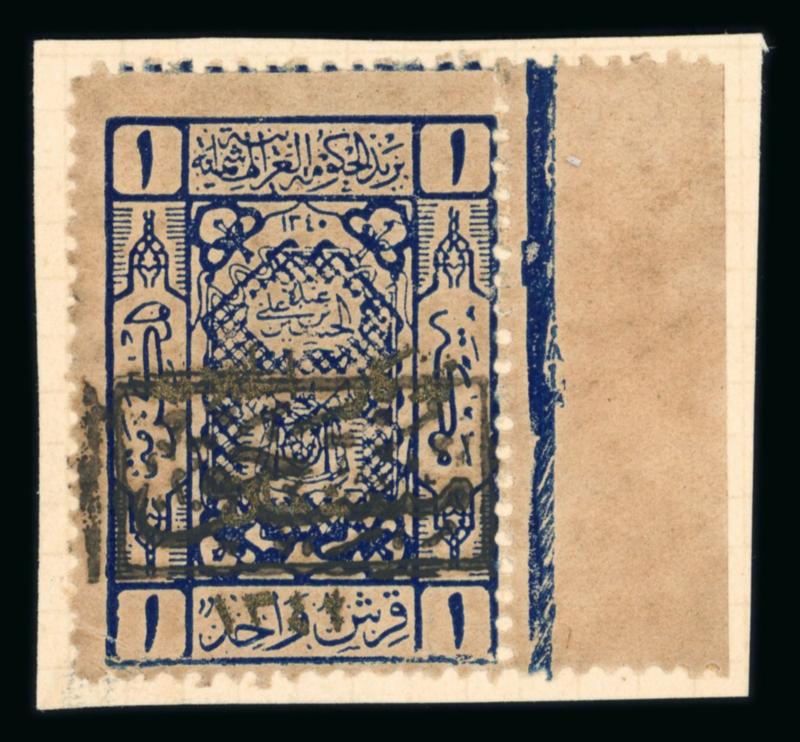1922-25, Selection of medium to rare ovpt. values of mostly Hejaz on 2 small stockcards incl. the very scarce 1924 postage due 1pi deep blue (SG D58 GBP 4000 but with tear, unused, cert. BPA), all used or mint hinged or MNH, mostly fine to v.fine, interesting & valuable specialist group