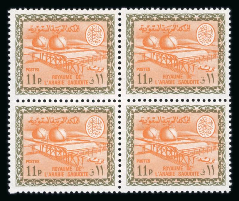 1923-1975 Lot of 37 mint stamps, many never hinged, including six blocks of four of which the 1970 SG670 11p orange and olive and the 1972 SG784 Wadi Hanifa Dam 7p black and brown. Other noteworthy items include the 1923 SG49 10 on 5pi olive and the 1945 SG342A 200 guerche red-brown etc., plus small