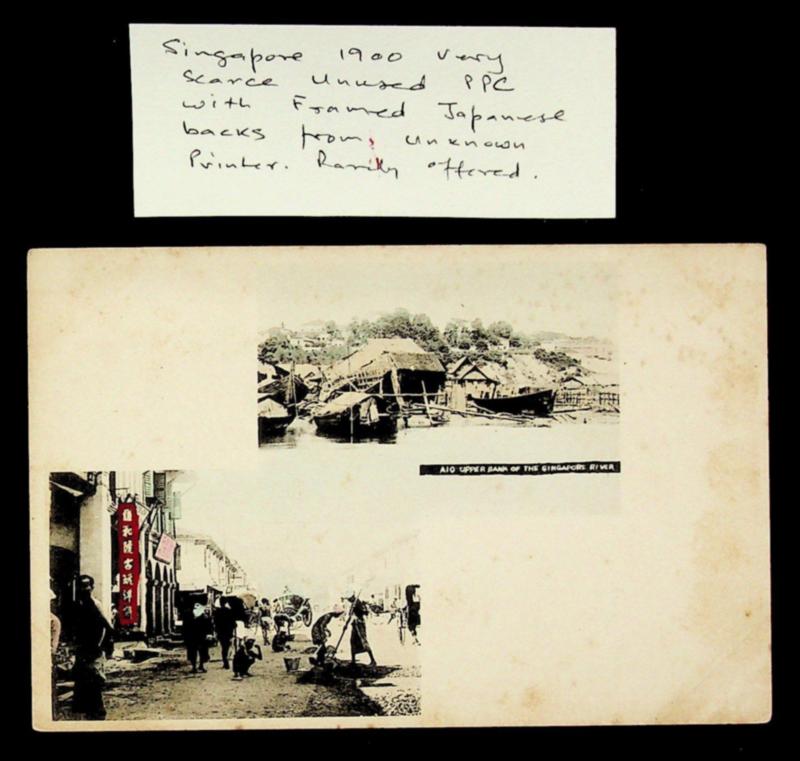 Singapore 1900 scarce unused UPU PPC depicting Upper bank of Singapore River w/ framed Japanese back