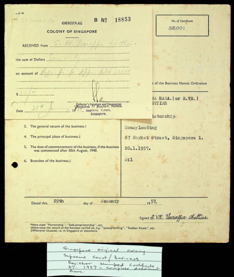 Singapore 1957 original colony Supreme Court/Business Registrar stamped Certificate complete document Rare