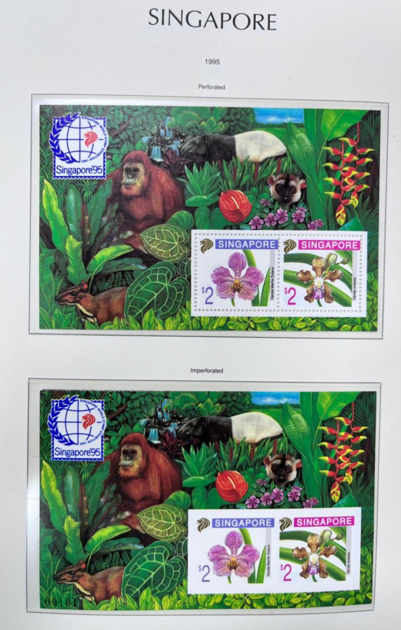 Singapore 1995 World Exhibition Rare unused MNH set - Perf + Imperf Flower MS - Very scarce