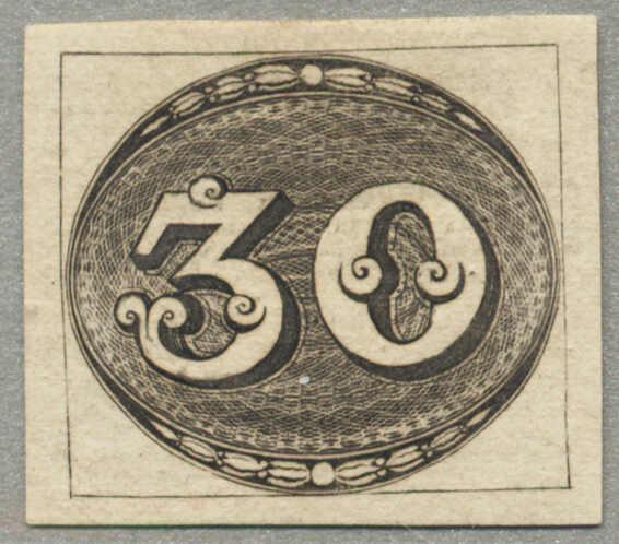 1843, 30 r, black with large margins all around and in deep fresh shade, unused, LPOG, a exceedingly rare unused stamp in excellent condition with the usual paper structure, Scott $ 4,500, XF! Estimate 4.500€.