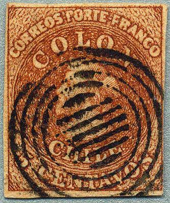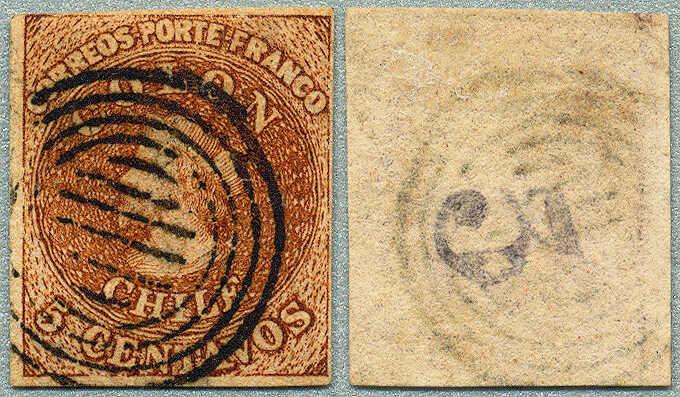 1854, 5 c, deep brown, Santiago printing, used, very fresh and desirable, XF! Estimate 360€.