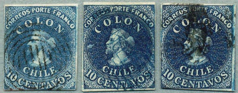 1854, 10c (3), slate blue on white paper, imperf, Santiago Prints, touched to huge margins, used, very fresh and desirable, XF! Estimate 720€.