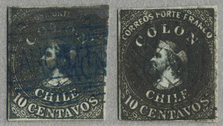 1854, 10c (2), light dull blue, imperf, Santiago Prints, touched to good margins, used, very fresh and desirable, XF! Estimate 300€.