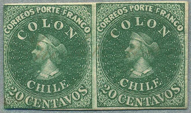 1854, 5 c, dull chocolate, pair, Santiago printing, used, very fresh and desirable, XF! Estimate 900€.