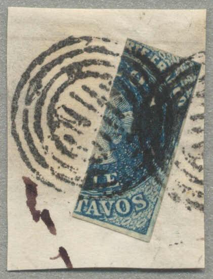 1858, 10 c, blue, diagonally bisceted, on letter from TALCA to SANTIAGO, used small ring cancel and dispatch TALCA, bisected stamps on letters are very scarce, fresh and desirable condition, XF! Estimate 200€.