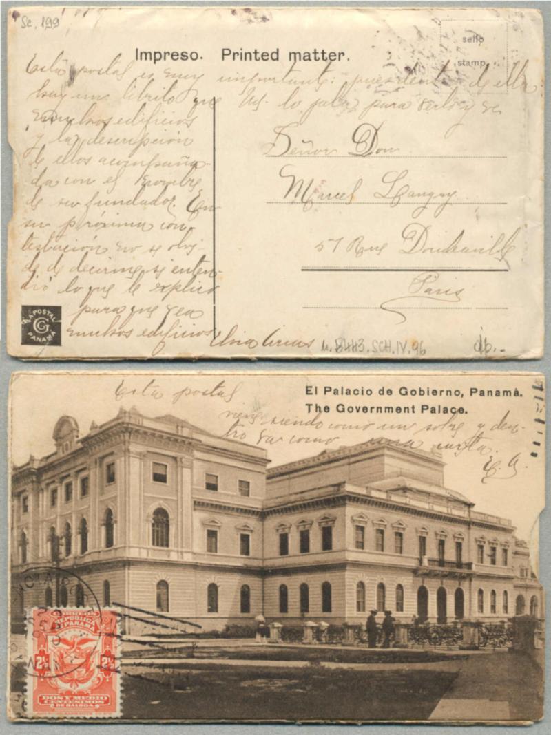 1909-1915, 2 1/2 cents, reddish-orange, VALENCIAPOSTA - PANAMA - 29 SEP. 1910, sent to Paris, tourist propaganda postcard containing a photograph and description of the city's main buildings, Ex Provera, XF! Estimate 200€.