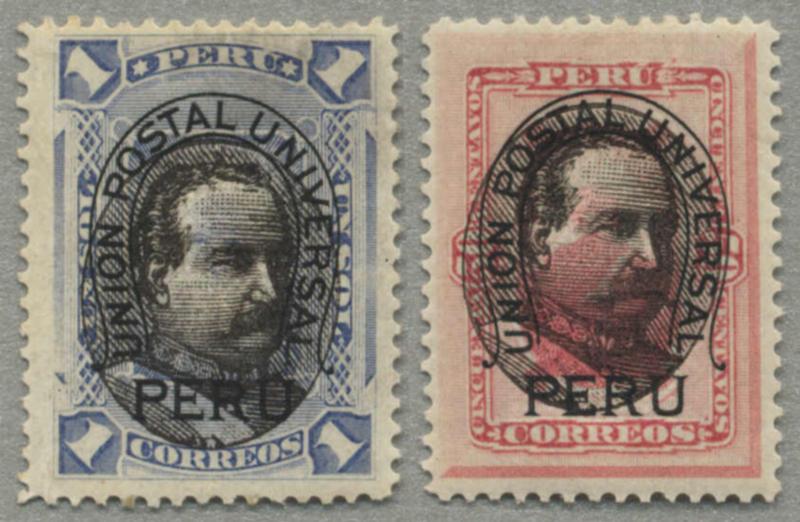 1894, Bermudez 50 c. rose and 1 sol. ultramarine with horseshoe overprint, LPOG, fresh and desirable, ex the Brian Moorhouse Estate, VF-XF! Estimate 245€.