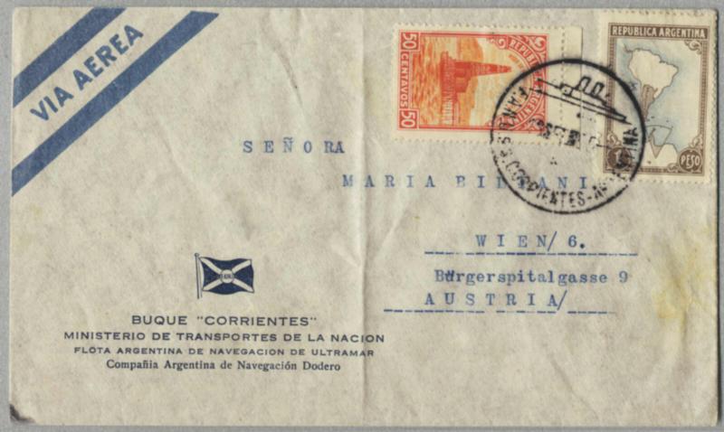 1955, Airmail letter sent by ship, with interesting pictorial ship cancellation, very fresh and attractive, XF! Estimate 200€.