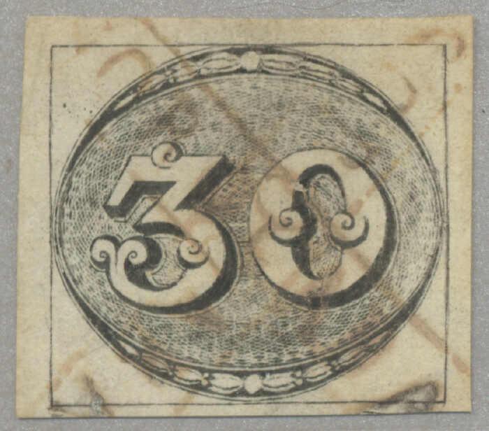 1843, 30r., black, used RIO DE CONTAS, VILLA DO (BA), four even margins, a great piece, VF-XF! Schätzpreis 2.000€.