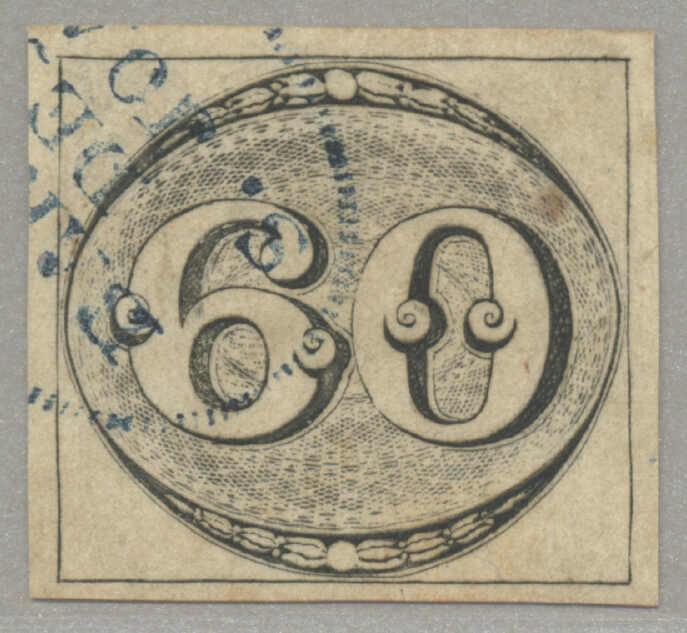 1843, 60 reis, imperf, used with crispy clear large part blue framed CORREIO GERAL DE SAO PAULO date stamp, very fresh and desirable, XF! Schätzpreis 2.000€.