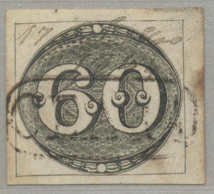 1843, 60 reis, imperf, used with crispy clear inverted straight-line CAMPO M handstamp and matching inverted manuscript, unlisted in Ayres and RHM, only recorded example on 60r per Ferreira, very fresh and desirable, XF! Schätzpreis 3.000€.