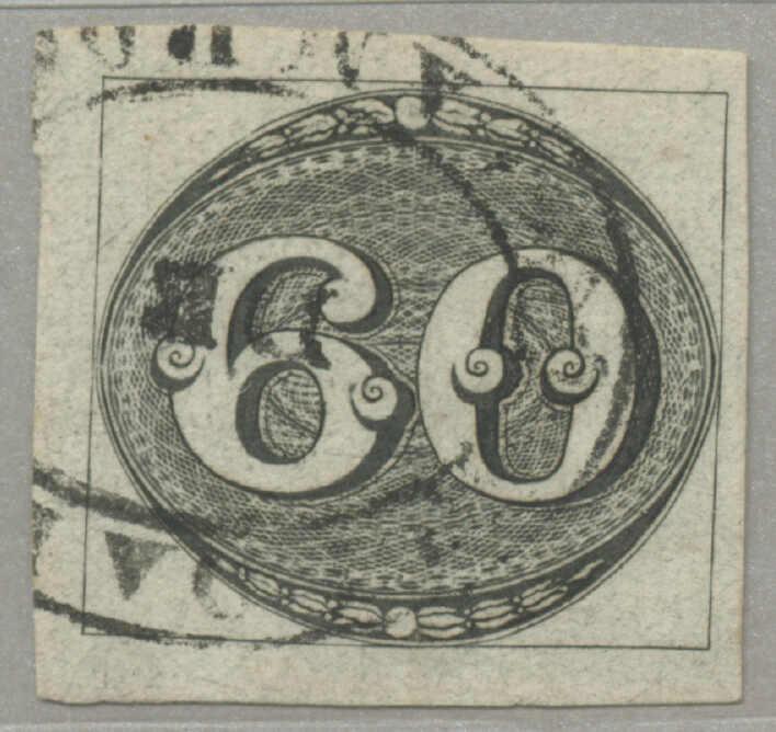 1843, 60r., grey black, worn impression, used SACCO DA MANGARATIBA (RJ), close to huge margin at left with dividing line, signed Schiffer, VF-XF! Schätzpreis 1.500€.