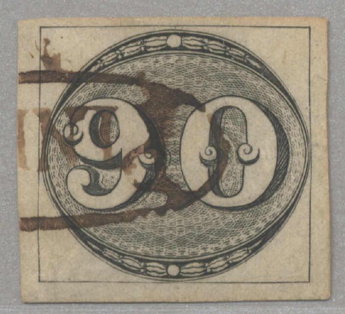 1856-62, 10 cent., worn impression, used with four ringed centre bared cancellation, on piece, very fresh and desirable, XF! Schätzpreis 800€.