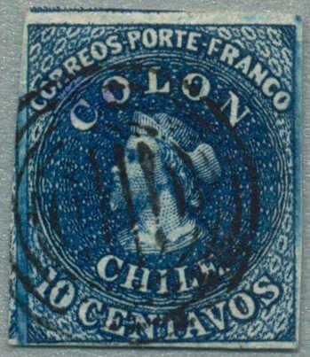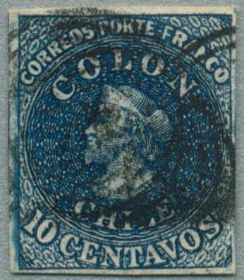 1854, 10 c, deep blue, Santiago printing, used with black cancellation, very fresh and desirable, XF! Schätzpreis 300€.