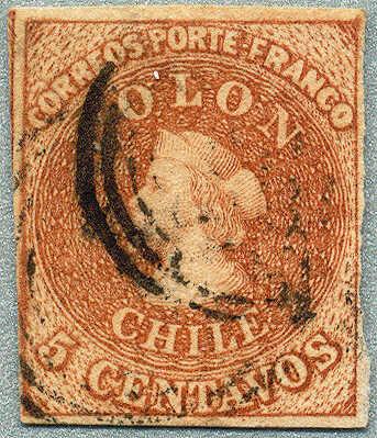 1854, 5 c, deep brown, Santiago printing, used, very fresh and desirable, XF! Schätzpreis 360€.