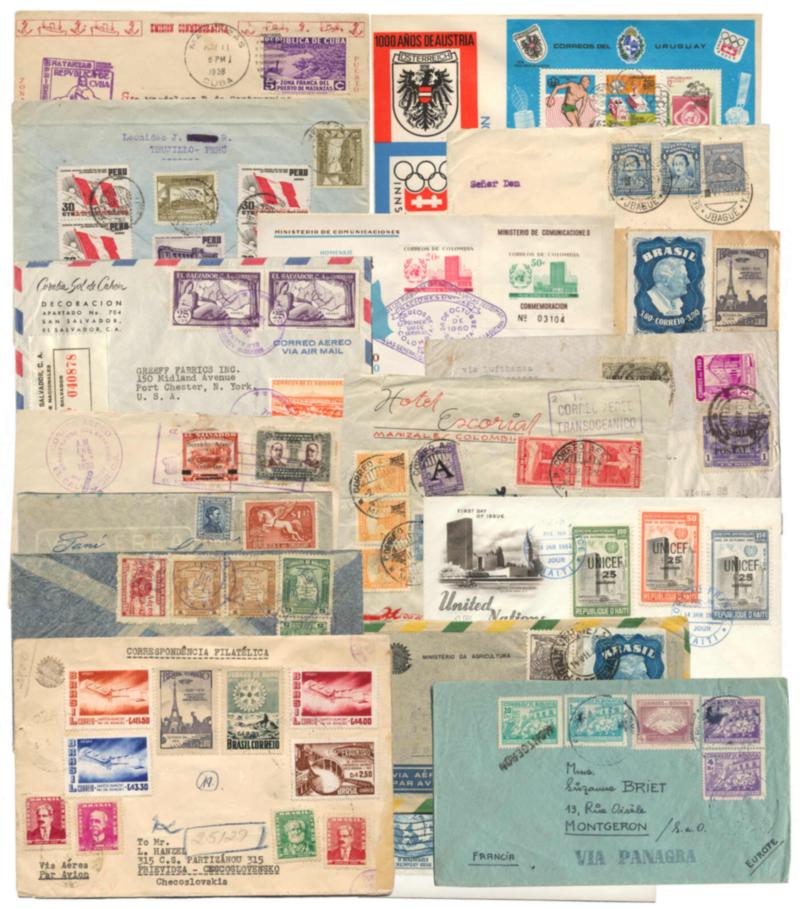 1920-50, small collection of (20) registered/Airmail/regular letters from Colombia, Brazil, Peru, Niceragua, Haiti, Bolivia, Uruguay, El Salvador, Honduras, Cuba, many to Europe, good to excellent condition, VF-XF! Schätzpreis 400€.