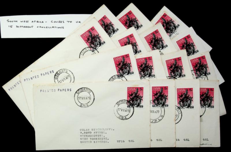 South West Africa 1979 set of 15 covers w/ different cancellations to West Yorkshire, UK