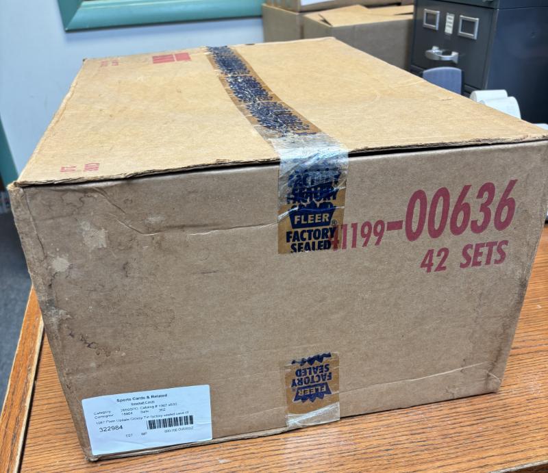 1987 Fleer Update Glossy Tin factory sealed case of (42) sets, ea set contains (132) glossy cards & (22) team logo stickers, ea set factory sealed, rookies incl Maddux, McGriff & McGwire; gen MT