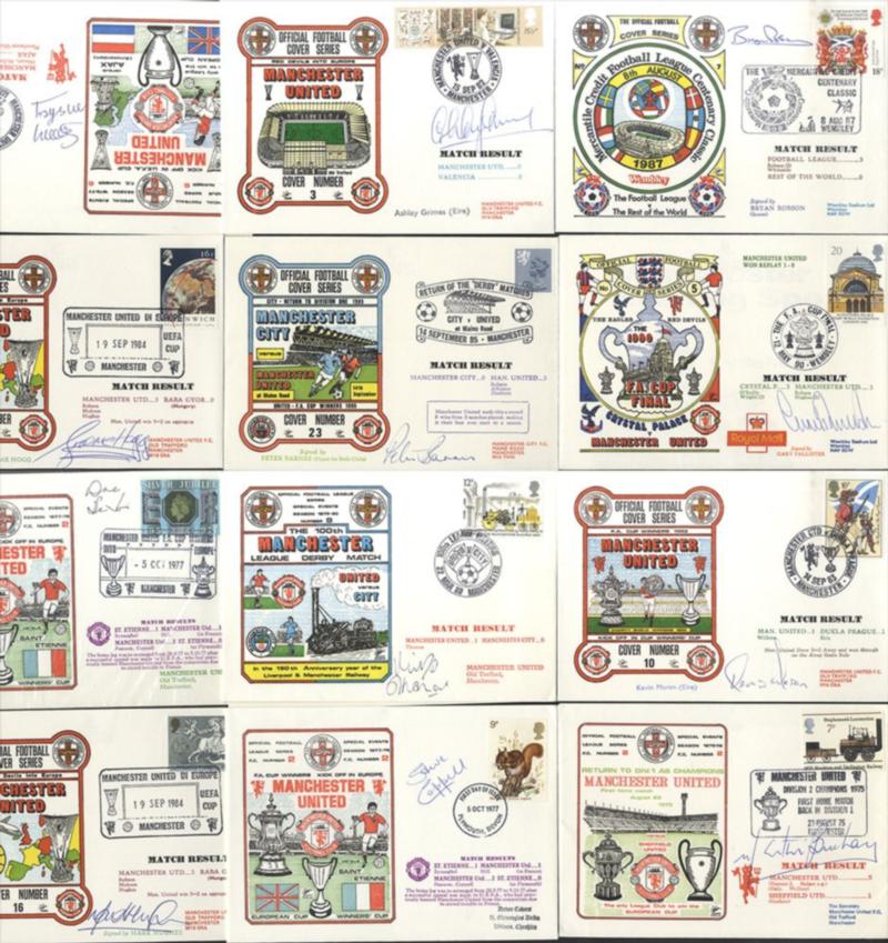 FOOTBALL - MANCHESTER UNITED commemorative illustrated covers (88) comprising foreign (17), domestic (57) & signed (14), signatures incl. Bryan Robson, Gary Pallister, Mark Hughes, Steve Coppell etc.