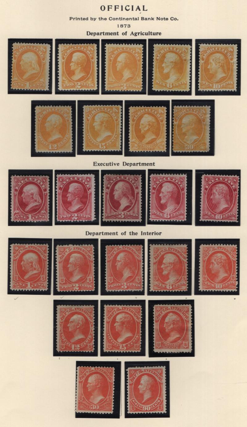 OFFICIALS Unused over (120) diff, 19/20th Cent mounted on Scott Natl pgs; incl O1-9, O10-14, O15-24, O25-30, O32, O35-38, O40-44, O47-56, O57-64, O65-66, O68P4-O71P4, O72-82, O83-85, O87-93, O95, O102, O109, O112, O114-20, O121-26 & some 1980s; cond varies, usual gum cond LH/H/HH/HR/NG/RG/DG
